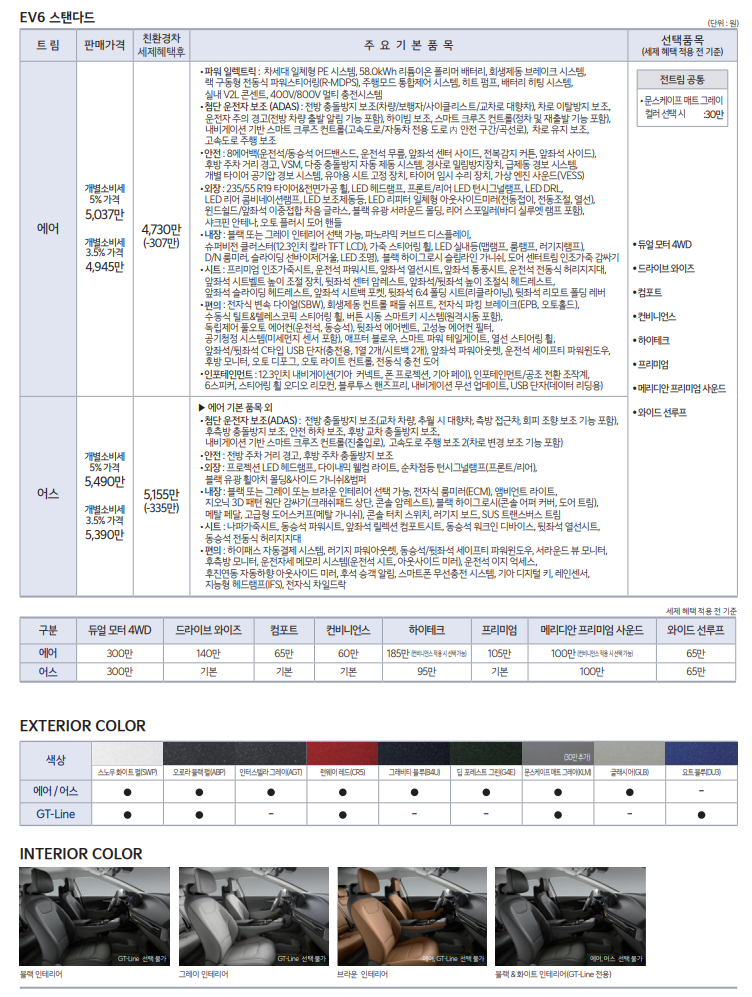 아래는 기아 ev6 가격표입니다.