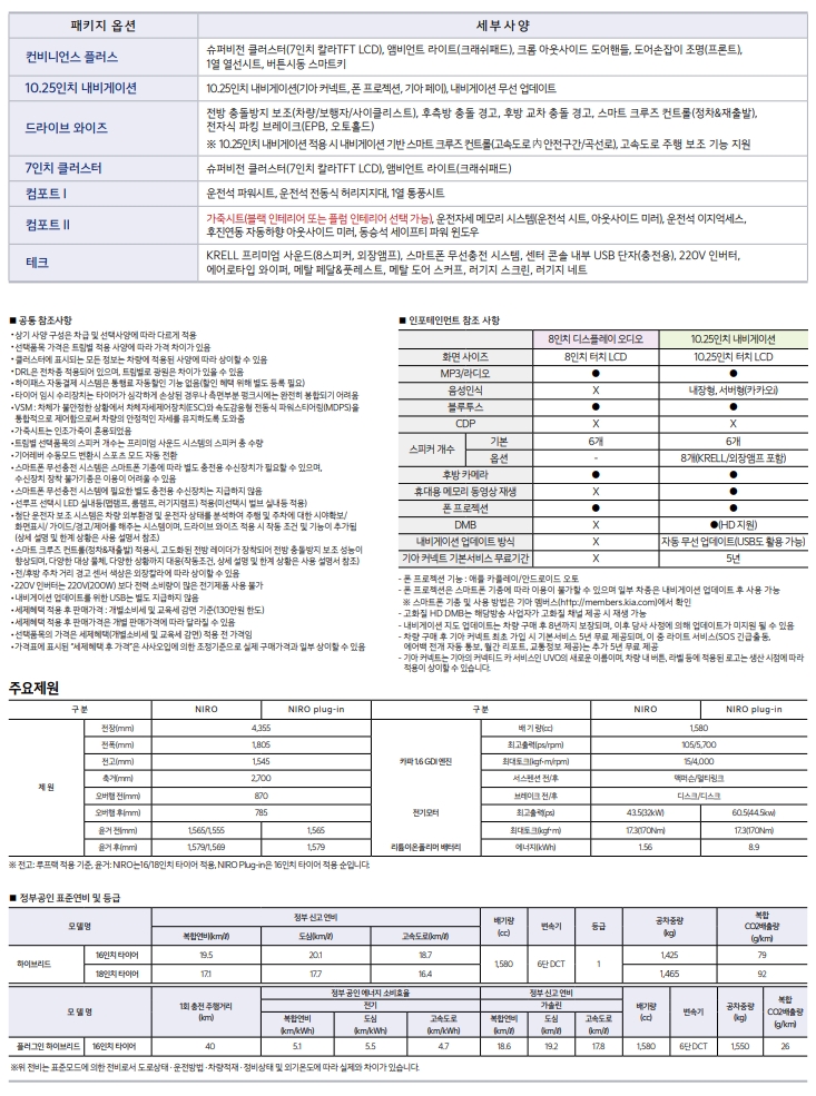 니로 플러그인 하이브리드 상세 (니로 플러그인 하이브리드 가격표 정리)