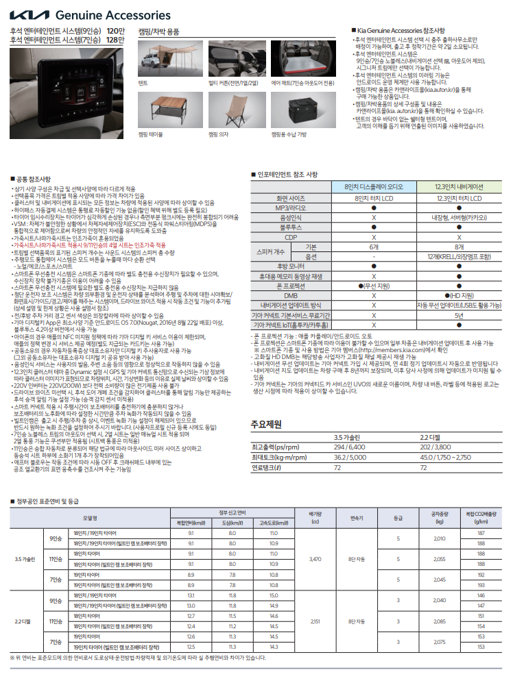 사용하실 수 있으며 수납공간의 윗부분은 테이블로 사용하실 수 있습니다. 7인승의 경우 엉덩이와 허리에 집중되는 부하를 완화하고 피로도를 줄이는 한편 뒷좌석 공간에도 공조 필터를 추가해 승차감을 높였습니다. 또한 7,9인승의 상징적인 크리스마스트리가 있습니다.한정된 상품으로 뒷좌석 엔터테인먼트 시스템도 추가할 수 있습니다. 2.2 디젤의 연비는 13.1km/L(18~19인치, 9인승), 3.5 가솔린의 연비는 9.1km/L(18~19인치, 9인승)다. ), 전작보다 대폭 향상되었습니다. 납치에 대비해 마지막으로 안전벨트를 가열하는 연결고리를 이용해 트렁크 미닫이를 해제하면 됩니다.