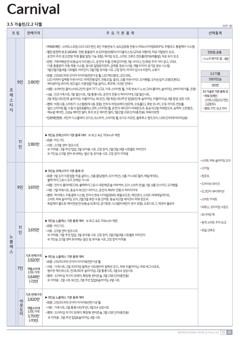 자동차 기아 카니발 (기아 카니발 가격표 정리)