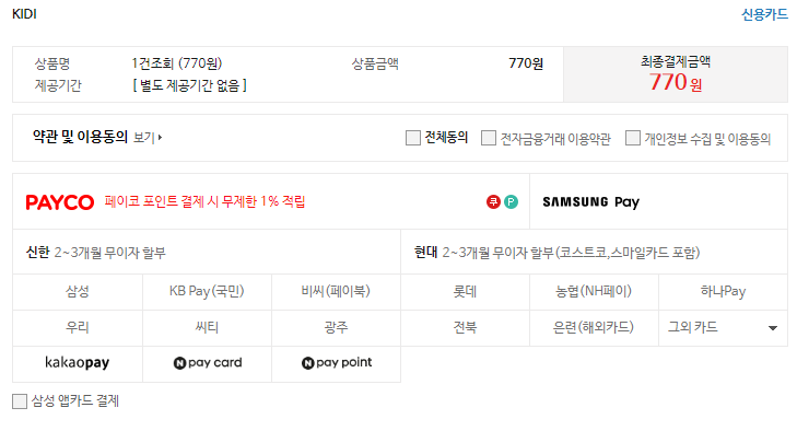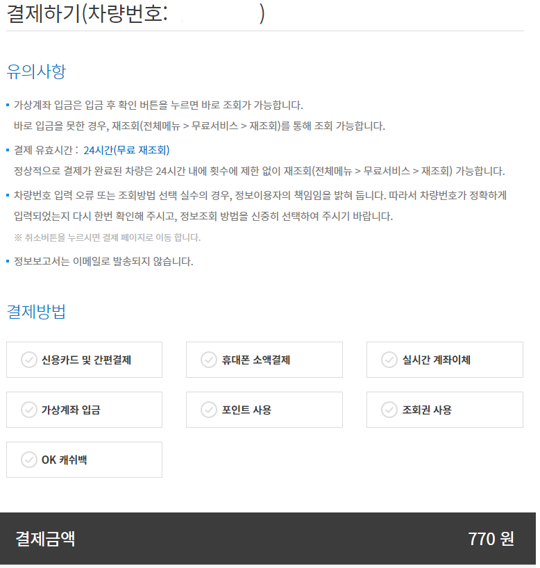사고이력조회를 하기 위해 결제를 완료해주도록 합니다.