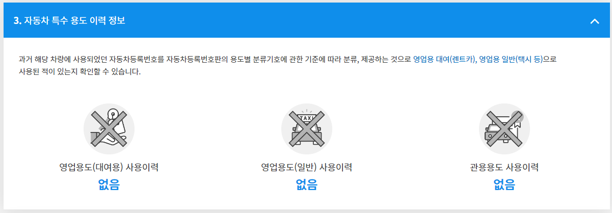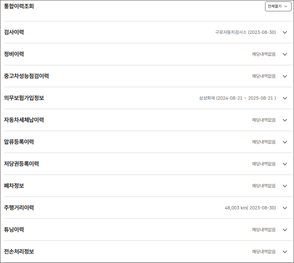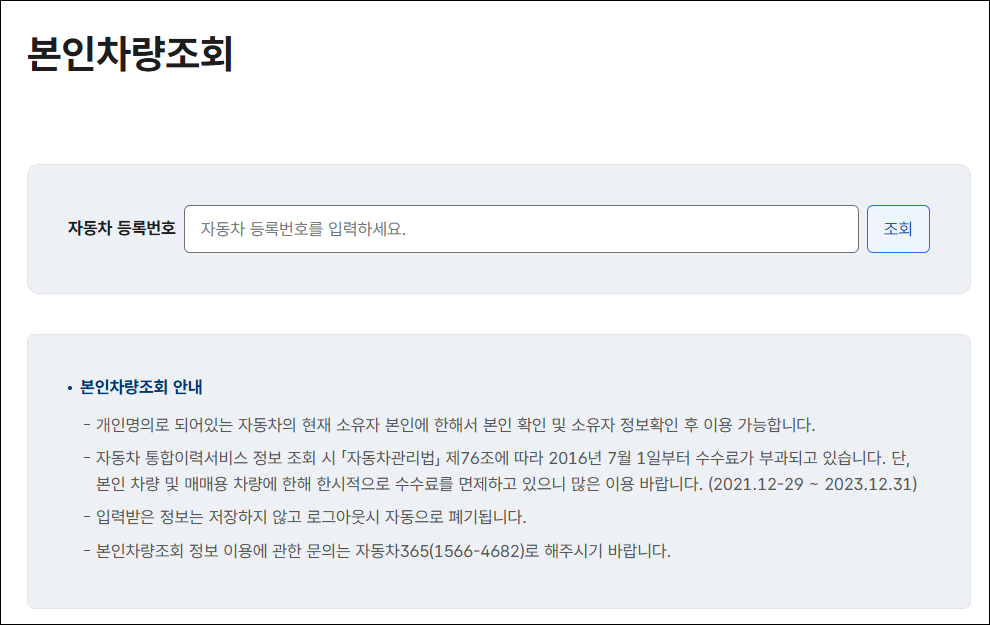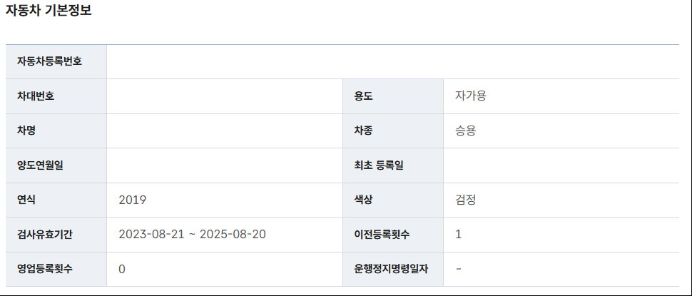 국토교통부에서 운영하는 자동차365 사이트에서 차량의 기본정보를 확인해볼 수 있습니다.