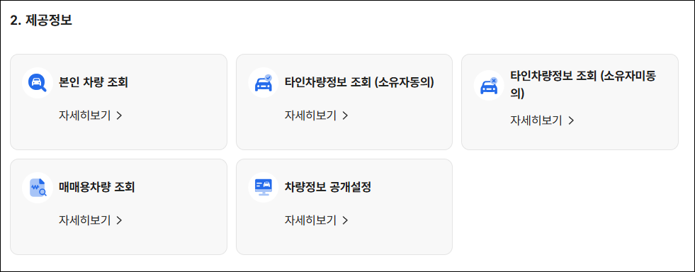 원하는 항목을 선택해주도록 합니다. 저는 본인차조회를 해보도록 하겠습니다.