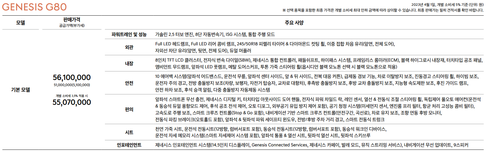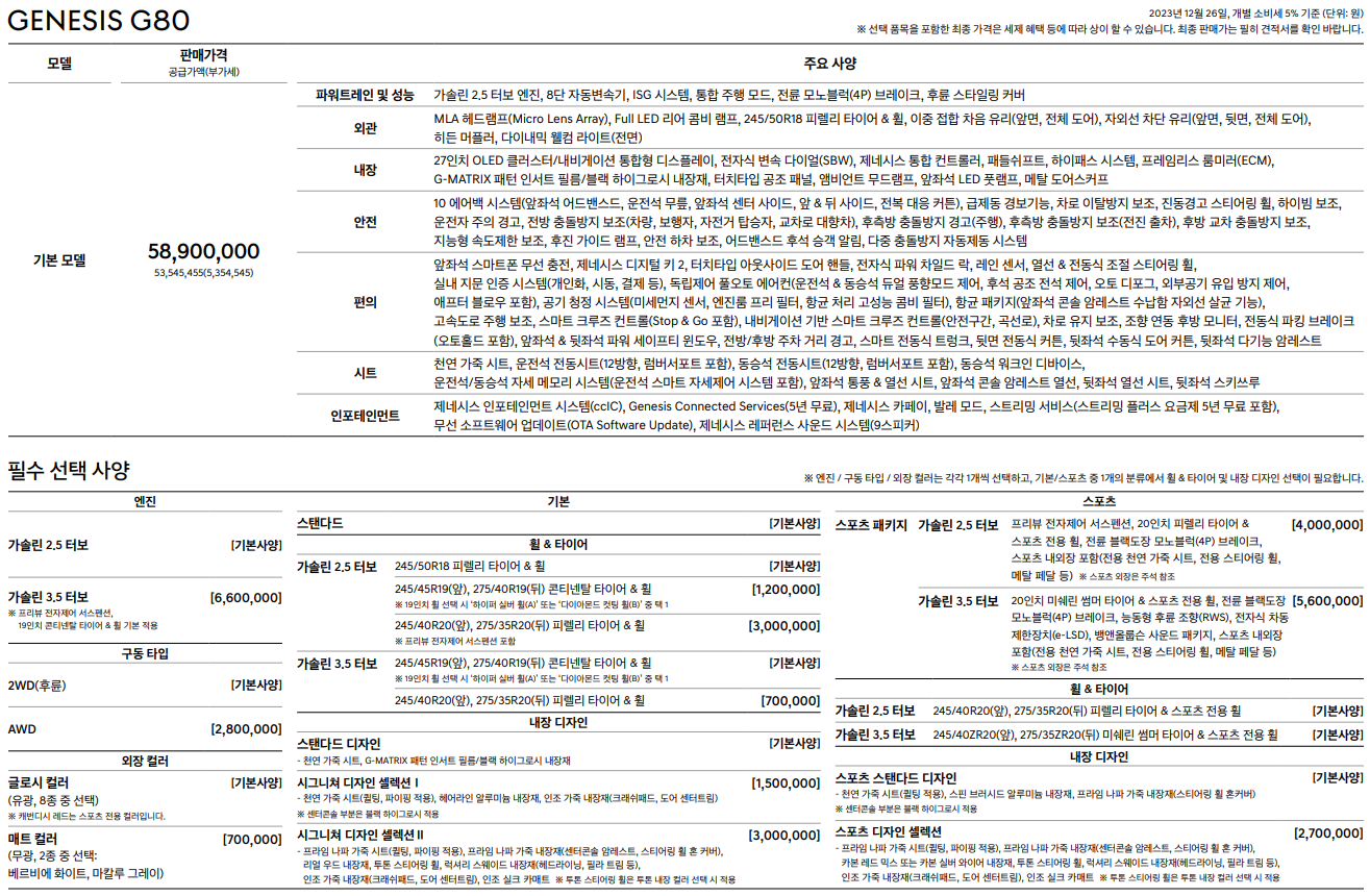 제네시스 G80 구매 가이드 (제네시스 g80 가격표 정리)