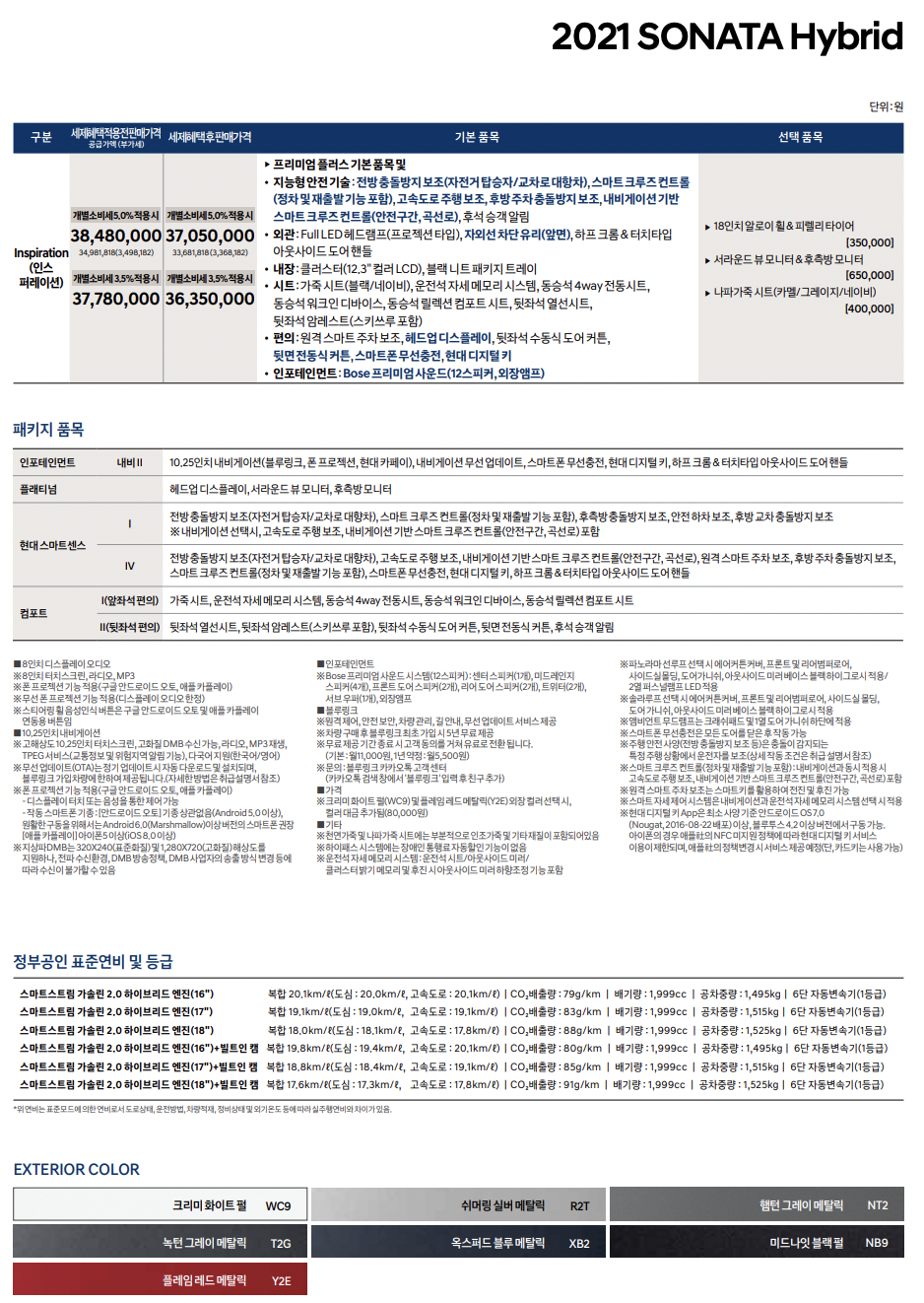 자동차 현대 쏘나타 하이브리드 (현대 쏘나타 하이브리드 가격표 정리)