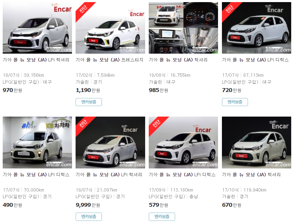 이상으로 모닝 중고차 시세 가격에 대해 알아보았습니다. 자동차 가격 기준은 작성일 기준입니다. 감사합니다.