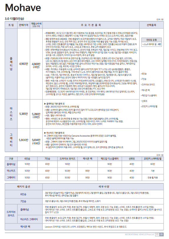 자동차 2021 기아 모하비 (2021 기아 모하비 가격표 정리)