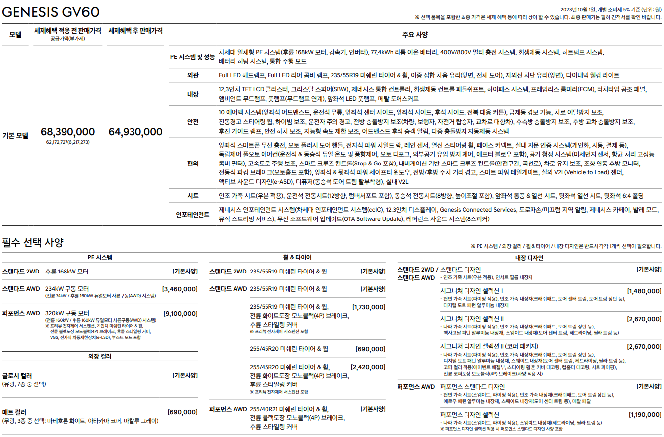 제네시스 GV60 가격 정리 가격표 정리해보도록 하겠습니다. GV60은 현대 제네시스의 준중형 전기차 SUV 자동차로 제네시스의 첫 전기차 플랫폼을 적용한 자동차 입니다. 제네시스 자동차 GV60 외부 색상은 비크 블랙, 우유니 화이트, 마테혼 화이트, 세비야 실버, 카본 메탈, 멜버른 그레이, 로열 블루, 상파울루 라임 등 총 11가지입니다.