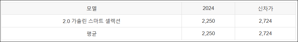 | 2.0 가솔린 스마트 셀렉션 | 2,250 | 2,724 |