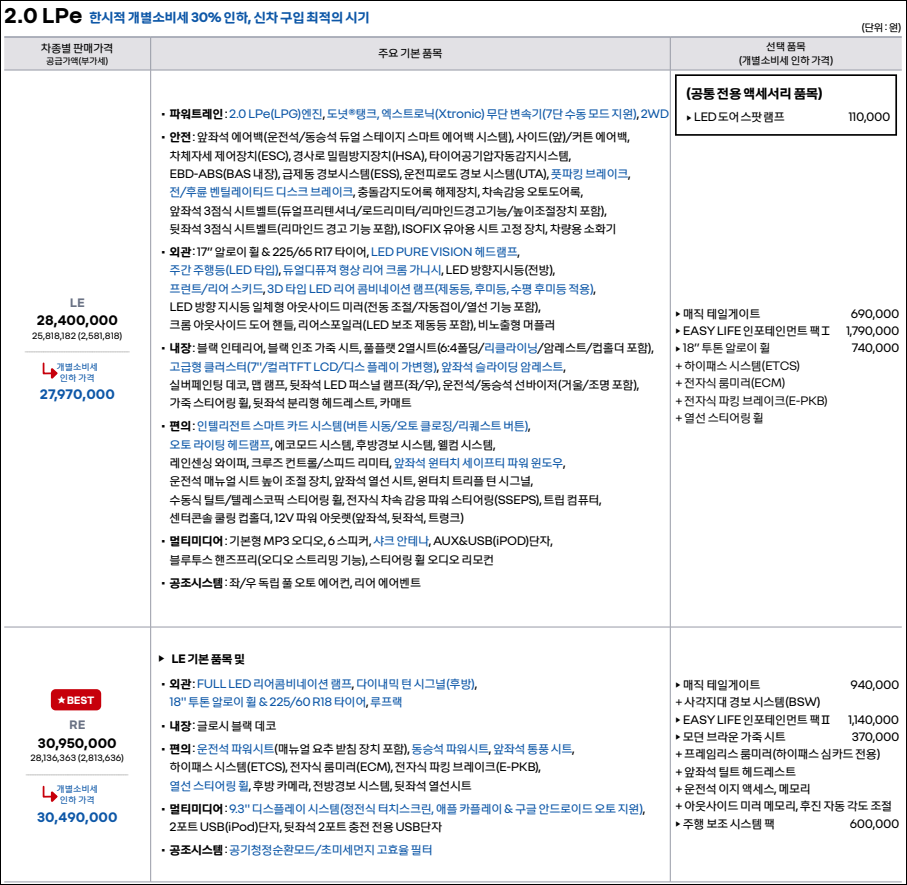 뿐만 아니라 최근 출시되는 소형 SUV 가격과 비슷한 수준의 낮은 가격을 내세우고 있습니다. 경제성과 합리성을 갖추고 있습니다는 점이 눈에 띕니다. 오토뷰 등 많은 시승기가 의외로 호평을 받는 이유가 이것입니다. 즉, 정숙한 가솔린 엔진 SUV를 원하는 사람에게 있습니다서 고배기량 고마력이라는 부분에는 흥미 없고 오히려 비용 대비 성능이나 연비 등의 실리성에 관심이 있는 사람이라면 충분히 좋은 선택이 될 것입니다.