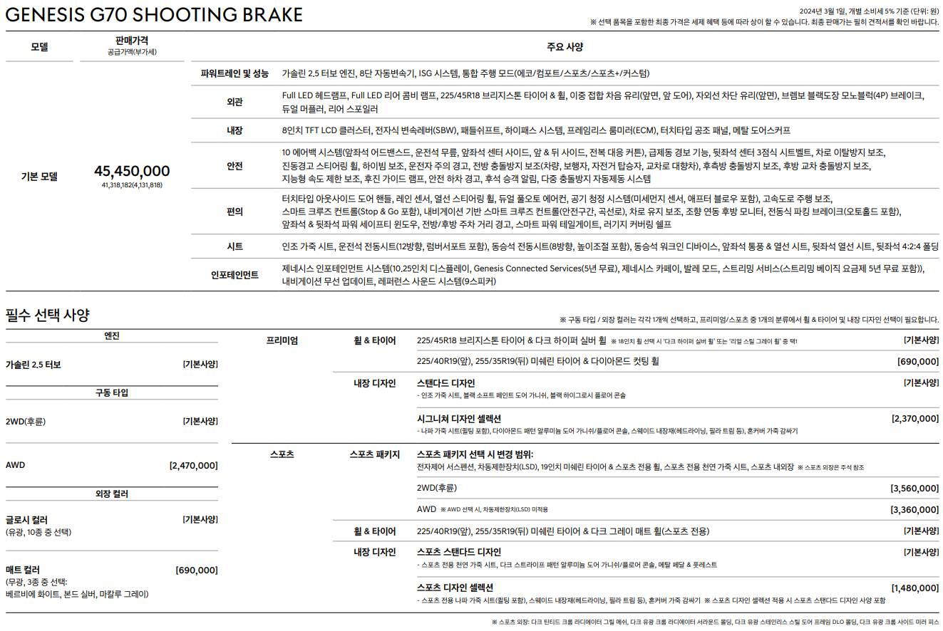 G70 슈팅브레이크 가격