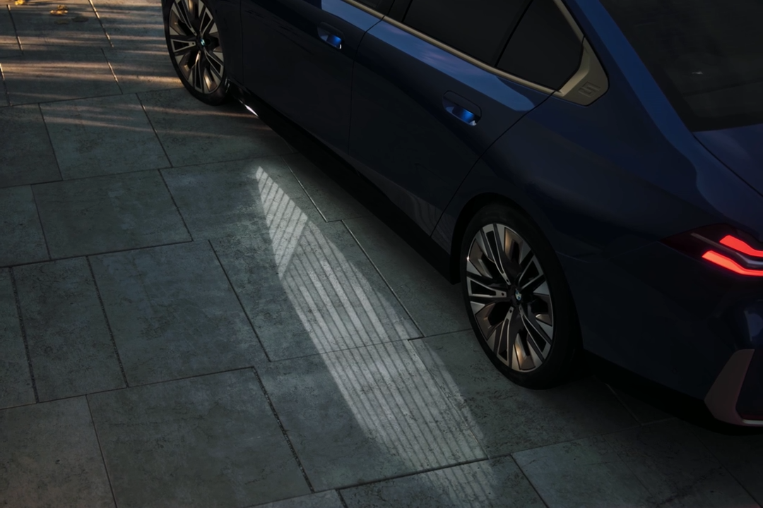 다음으로는 럭셔리 웰컴 라이트가 적용되었습니다. 이 옵션은 차량에 탑승 전 문 아래쪽에 LED를 비춰집니다. 장애물이 있는지 확인할 수 있도록 라이트를 비춰주는 옵션입니다. 웰컴 라이트로 운전자를 반갑게 반겨주는것을 볼 수 있습니다.