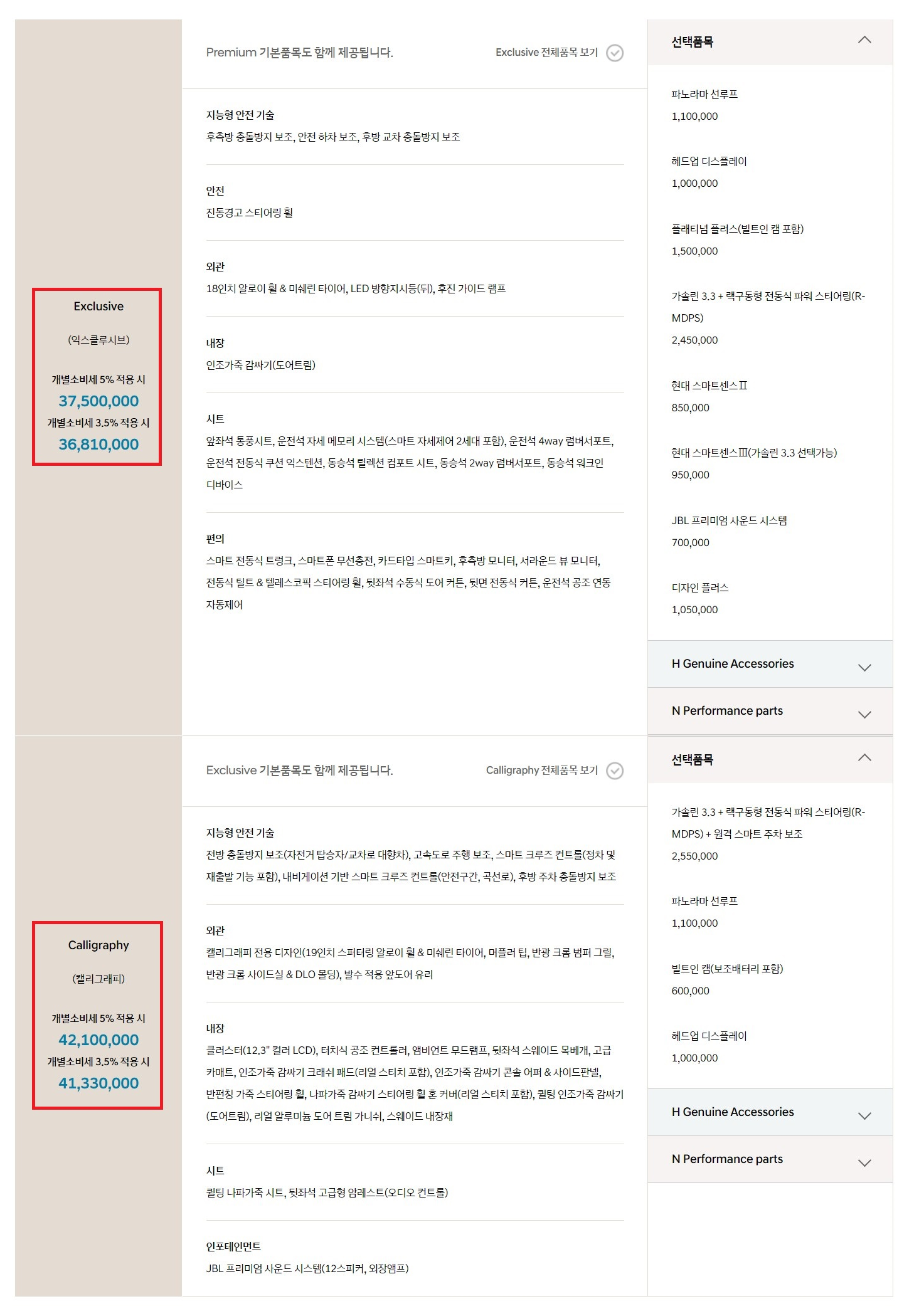 - 그러나 대한민국의 대표적인 준대형차로서 그 위상이 상당히 높습니다. 우선 가격대별로 적절한 옵션과 함께 타고 싶다면 3000만 원대 중반부터 4000만 원대 중반까지 쉽게 살 수 있는 차로 보기 어렵습니다.[16]