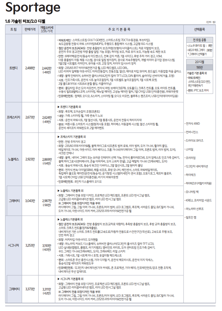 자동차 스포티지 (스포티지 가격 정리)