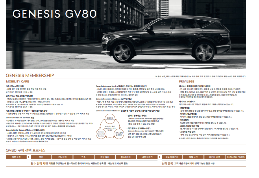 동급 최초로 ARG 액션시트를 장착해 운전자 편의를 극대화했습니다. 새로 개발되는 모델은 중형 럭셔리 세단(G70), 중형 럭셔리 SUV(GV70), 준대형 럭셔리 SUV(GV80), 준대형 럭셔리 전기차, 대형 럭셔리 SUV, 프리미엄 스포츠 쿠페다. 2020년 1월 첫 출시 당시 278마력 직렬 6기통 3.0L 커먼레일 디젤엔진을 적용했고 2020년 3월 9일 380마력 람다 V6 3.5L 가솔린 직렬 터보엔진과 304마력 세타3 직렬 4기통 2.5L 가솔린 직렬 터보엔진을 추가했습니다. 자동변속기는 모두 8단입니다.