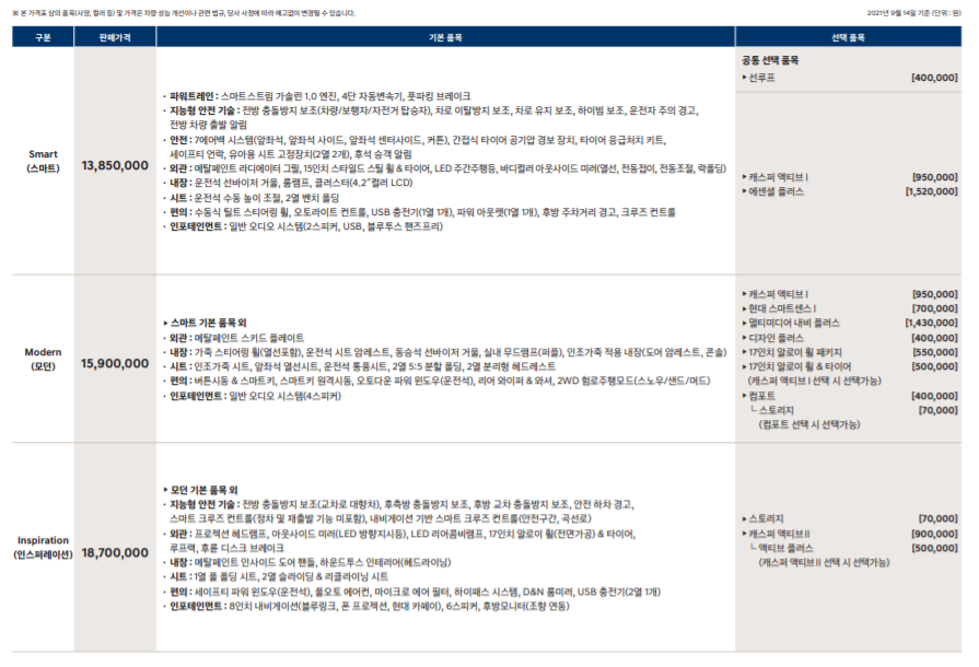 자동차 캐스퍼 (캐스퍼 가격 정리)