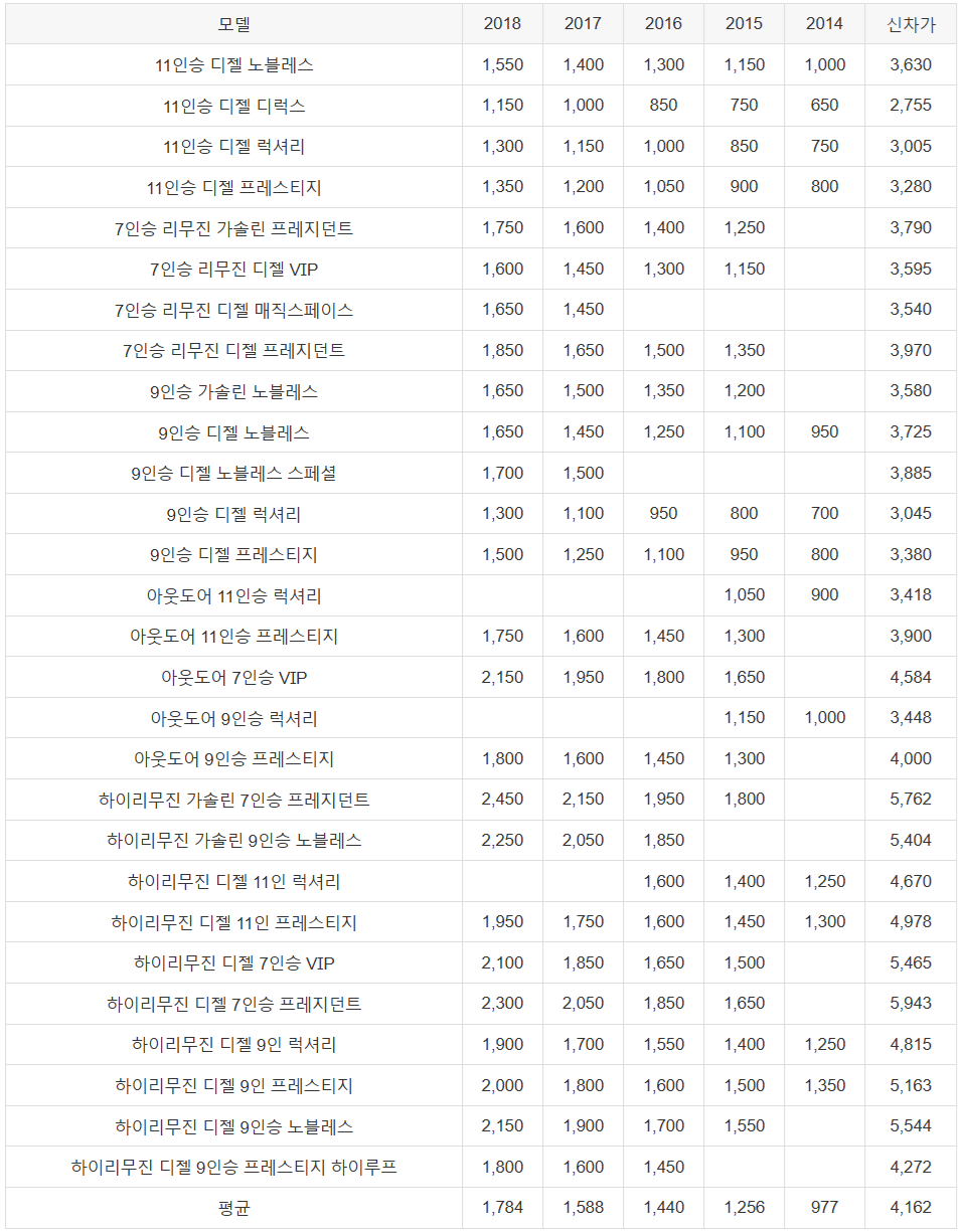 7인승 디젤 노블레스 3,350 3,050 2,850 2,700 4,070