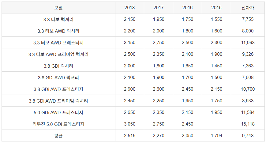 | 3.3 터보 AWD 프레스티지 | 3,150 | 2,750 | 2,500 | 2,300 | 11,093 |