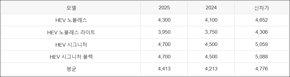 | HEV 노블레스 | 4,300 | 4,100 | 4,652 |