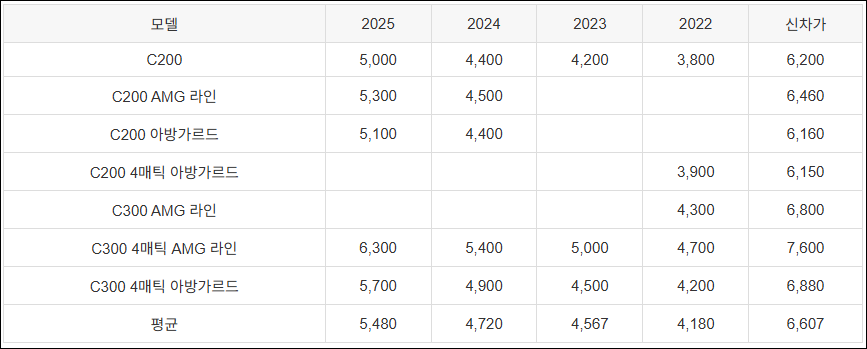 | C300 4매틱 아방가르드 | 5,700 | 4,900 | 4,500 | 4,200 | 6,880 |