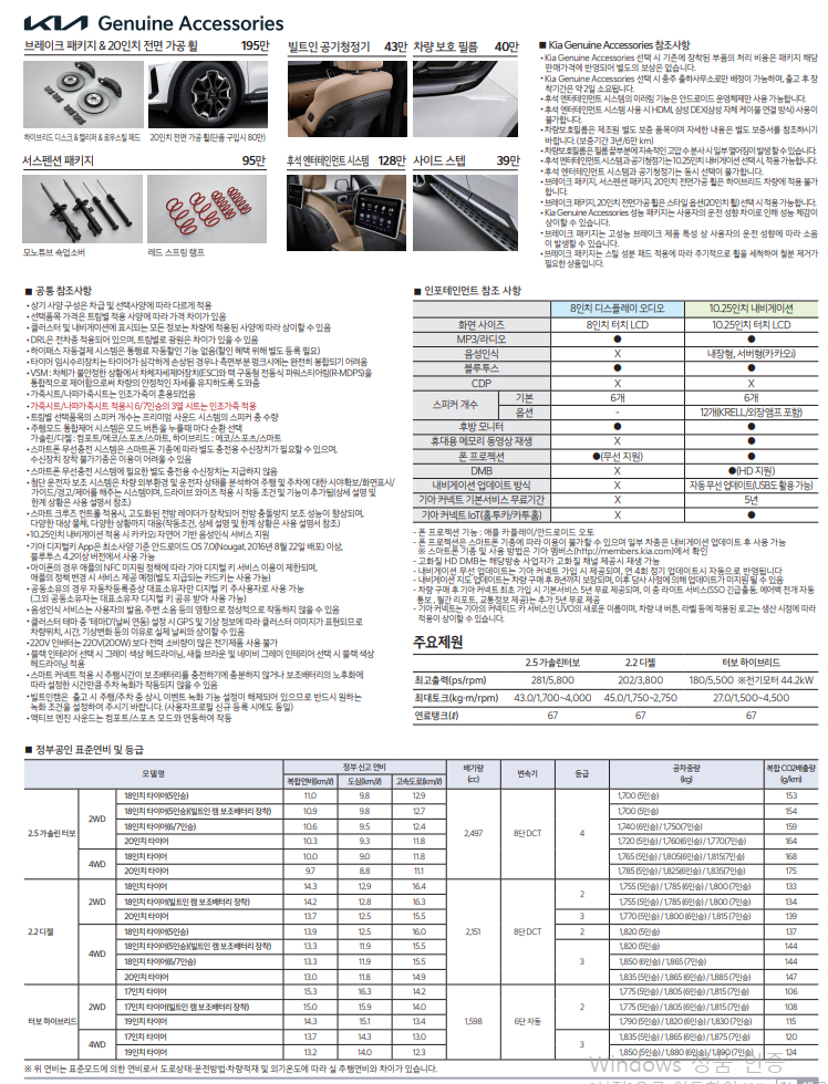 기아 쏘렌토의 악세사리에 대한 설명입니다.