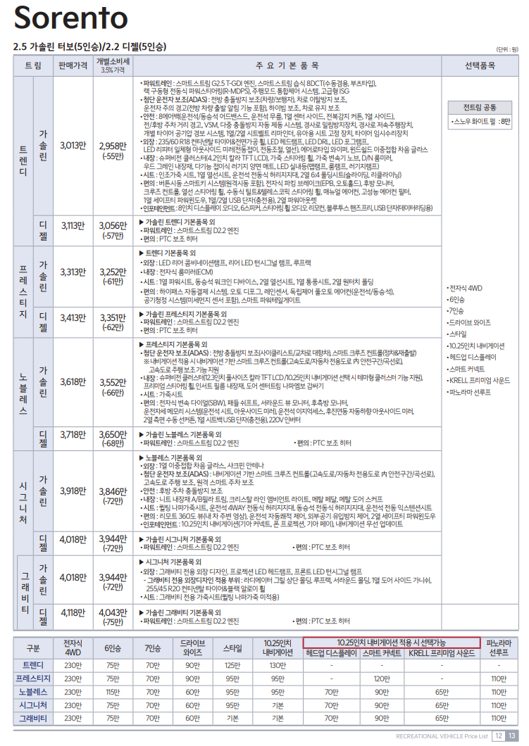 쏘렌토 상세 (쏘렌토 가격표 정리)
