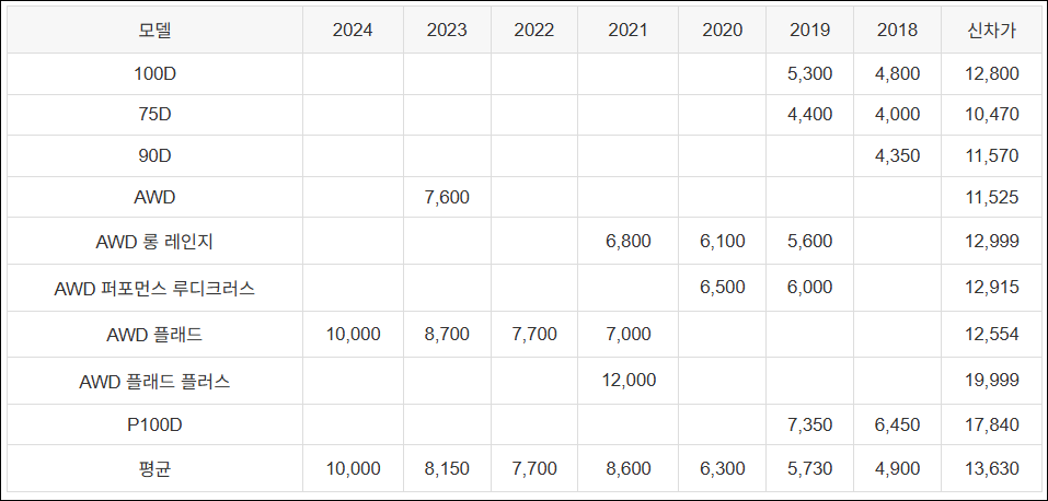 '수입 자동차 가격표 > 테슬라 중고차 시세표' 카테고리의 다른 글