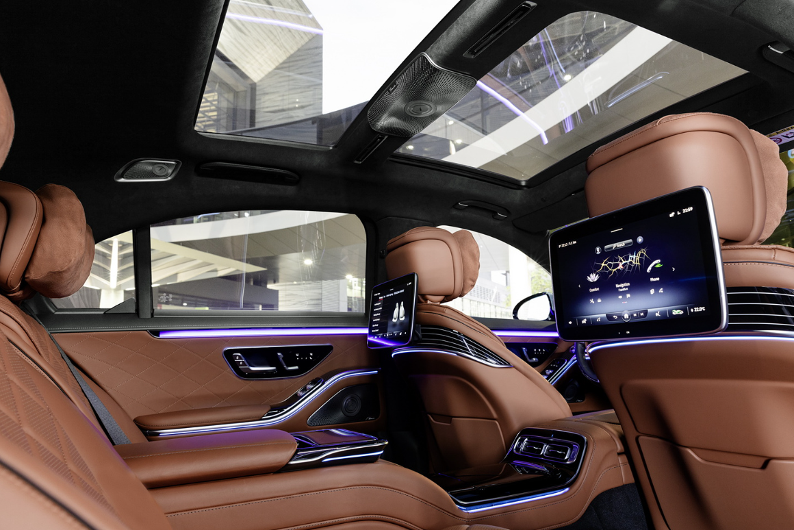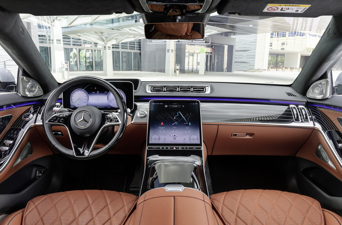 S클래스는 길이 5289mm, 폭 2109mm, 높이 1503mm로 도로에서 압도적인 존재감을 발휘하며, 넓은 실내와 과감한 외관 스타일에 기여합니다.