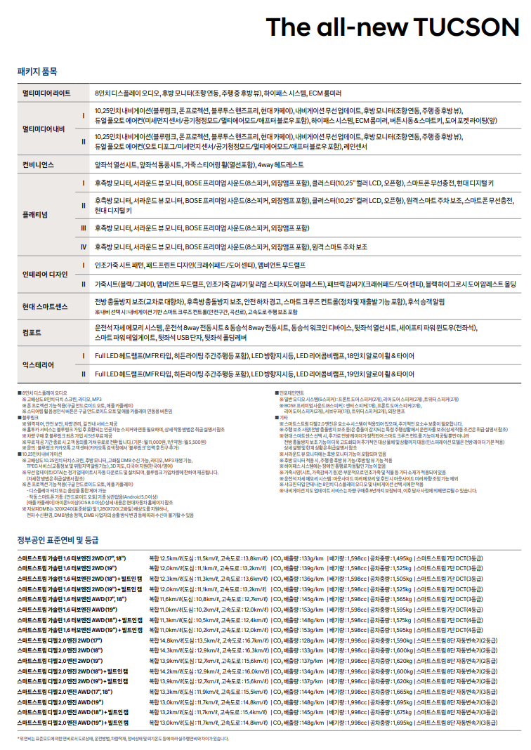 투싼 상세 (투싼 가격표 정리)