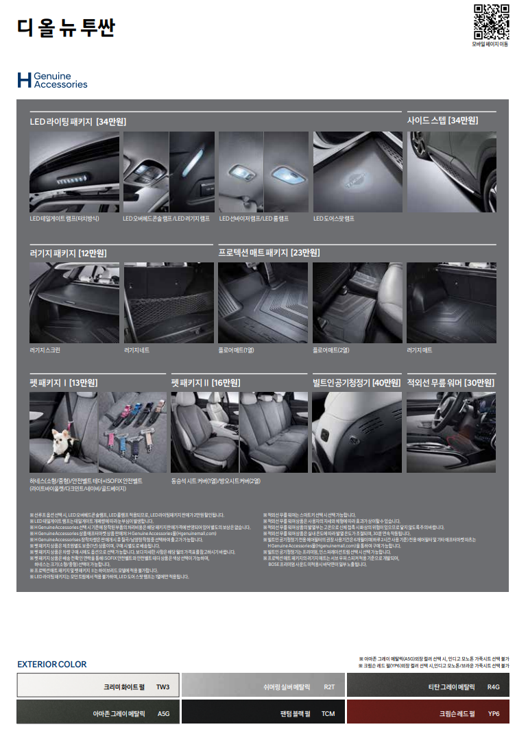 투싼의 패키지 가격표 내용입니다.