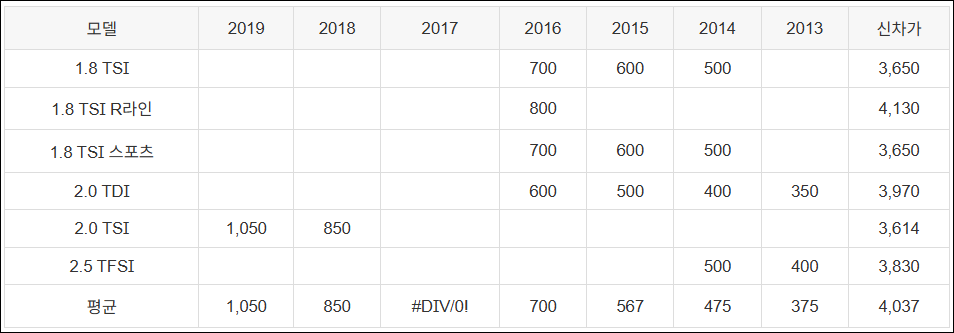 | 1.8 TSI 스포츠 | 700 | 600 | 500 | 3,650 | ||||
