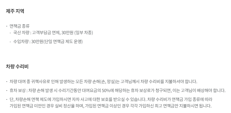 | 제주 | 일반 자차 - 50만원 | 일반 자차 - 50만원 |