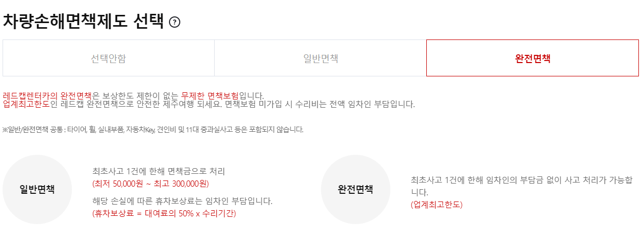 업계최고한도인 레드캡 완전면책으로 안전한 제주여행 되세요. 면책보험 미가입 시 수리비는 전액 임차인 부담입니다.