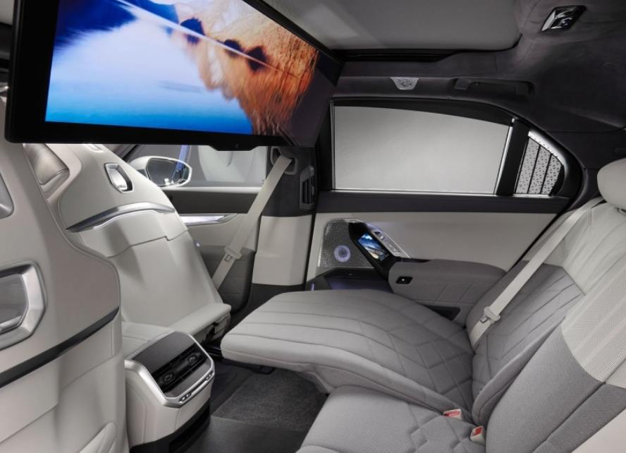 뒷자석에는 천장에서 내려오는 31.3인치 시어터 스크린이 처음으로 적용되었습니다. 8K의 해상도와 유튜브와 영상 스트리밍 기능이 제공됩니다.