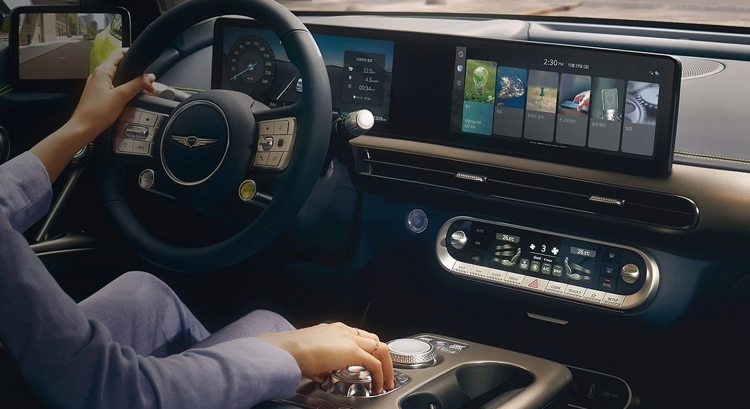 센터페시아 건너편에는 12.3인치 디스플레이 2개가 나란히 배치된 디지털 콕핏이 자리 잡고 있으며, 제네시스X 콘셉트카에 적용된 회전 크리스털 스피어와 2D 제네시스 로고가 실제 양산돼 적용됐습니다. 디지털 사이드 미러는 옵션으로 제공됩니다. 투톤 컬러 조합이 가능하며 에어컨, 조그 다이얼 등 버튼 소재와 디자인도 기존 제네시스의 패밀리룩을 그대로 가져갑니다.