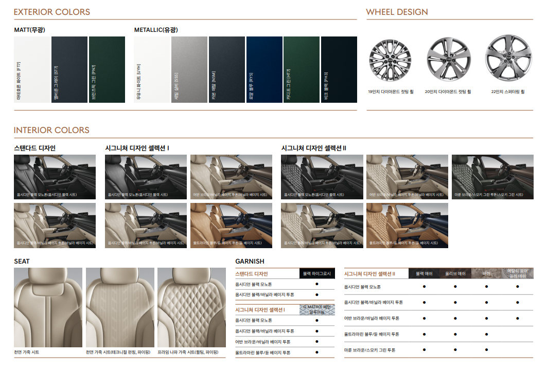 - 팰리세이드에 비해 전체 길이는 35mm 짧은 반면 휠베이스는 55mm 더 깁니다.파워트레인은 2.5L 가솔린 터보, 3.0L 디젤 및 3.5L 가솔린 터보라는 세 가지 모델로 제공됩니다. 예를 들어, 3.5L 가솔린 터보의 경우, 제로백은 국산 SUV 중 경쟁 차종이 없는 독보적인 파워 성능을 자랑할 것으로 예상됩니다.