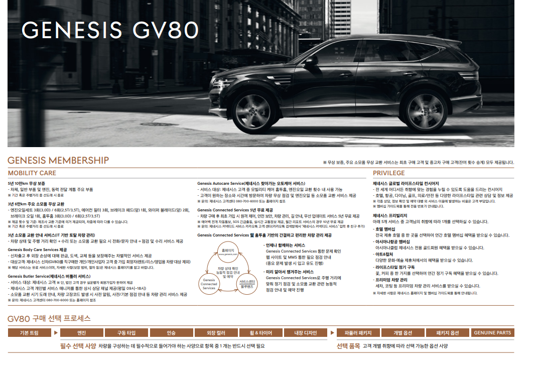 아래는제네시스 GV80의 인테리어 및 멤버쉽안내입니다.