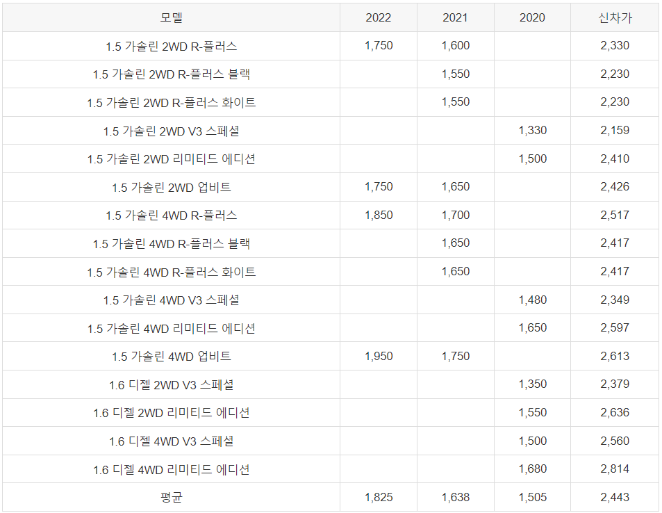 이상으로 티볼리 중고차 가격 시세표 알아보았습니다. 작성일 기준으로 된 중고차 시세표입니다.