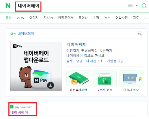먼저 네이버페이 검색 하여 접속해줍니다. 이 링크를 통해 접속해도 좋습니다.