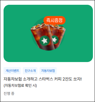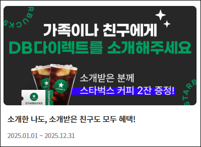 친구에게 DB 자동차보험을 소개하면 스타벅스 커피 증정 이벤트입니다.