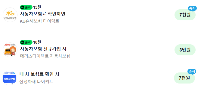 자동차보험료를 확인만 해도 KB손해보험 7천원, 삼성화재 7천원 이벤트가 있고, 메리츠 자동차보험에서 가입하면 3만원 주는 이벤트를 하고 있습니다.