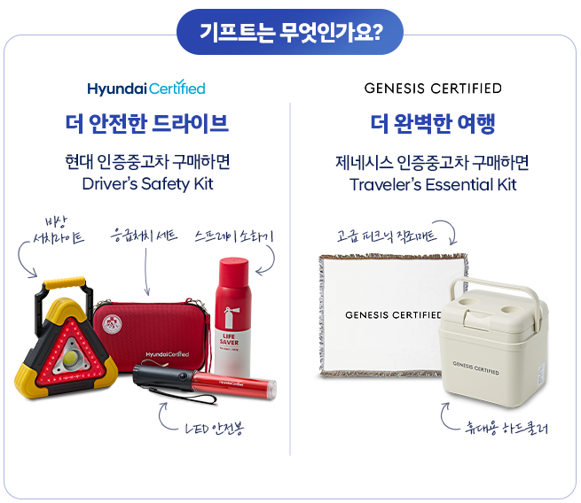 현대 중고차를 통해 차를 구매하면 안전키트, 여행키트를 증정하는 이벤트를 하고 있으니, 중고차를 구매할 계획이시라면 참고하시기 바랍니다.