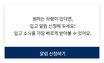 따로 원하는 차량이 있다면 입고신청을 해놓으면 알람을 빠르게 받아볼 수 있습니다.