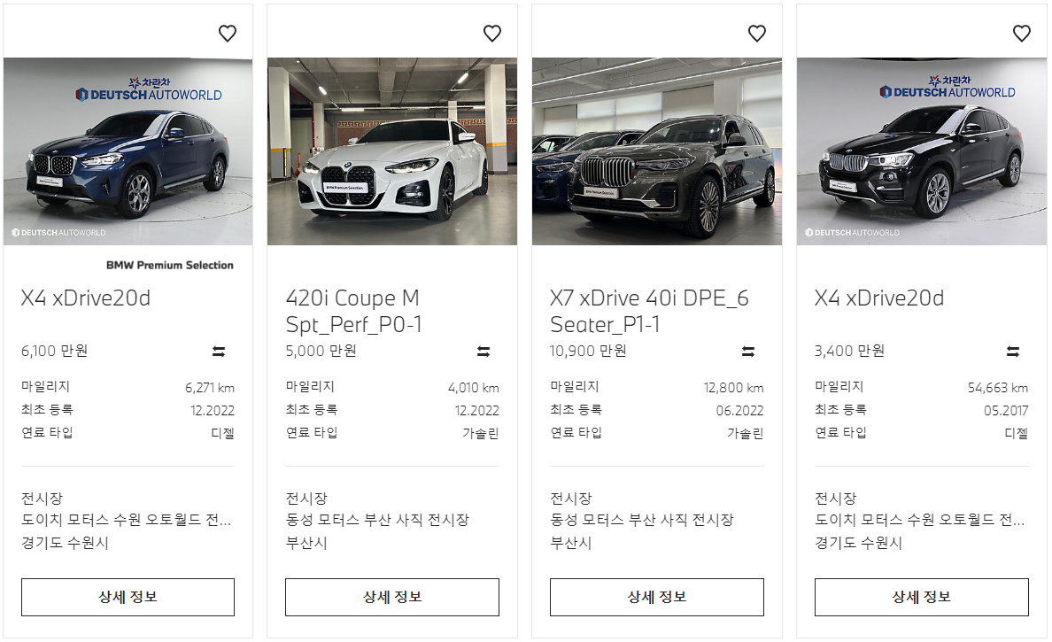 BMW에서 차량을 구매하여 관리, 1년 2만km의 워런티까지 있기 때문에 동일한 차량 상태라고 가정한다면 가격이 조금 비싼편입니다.