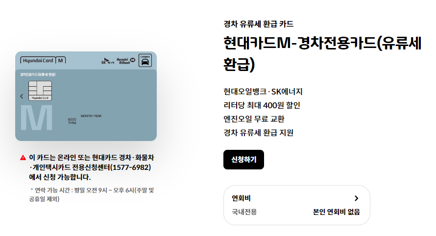 현대카드M 경차전용카드 - 홈페이지 신청 바로가기