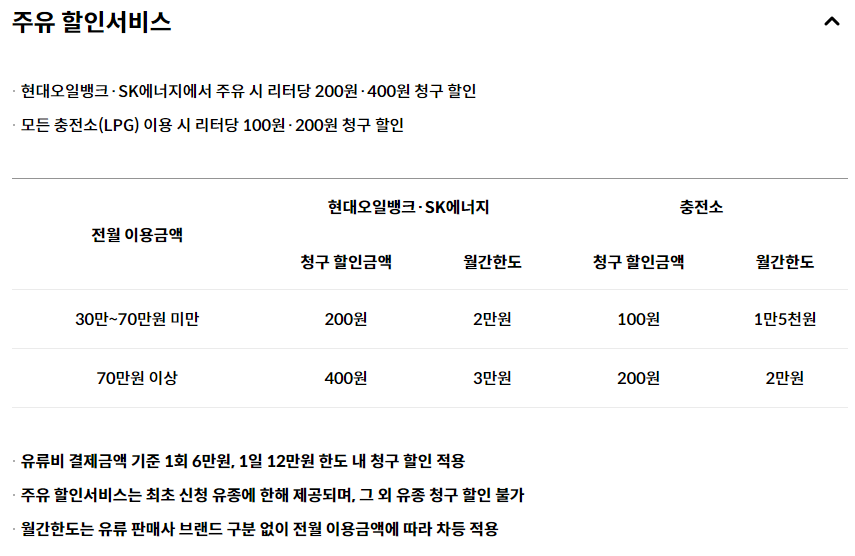 | 카드명 | 기본정보 | 유류세 환급 | 주요혜택 |