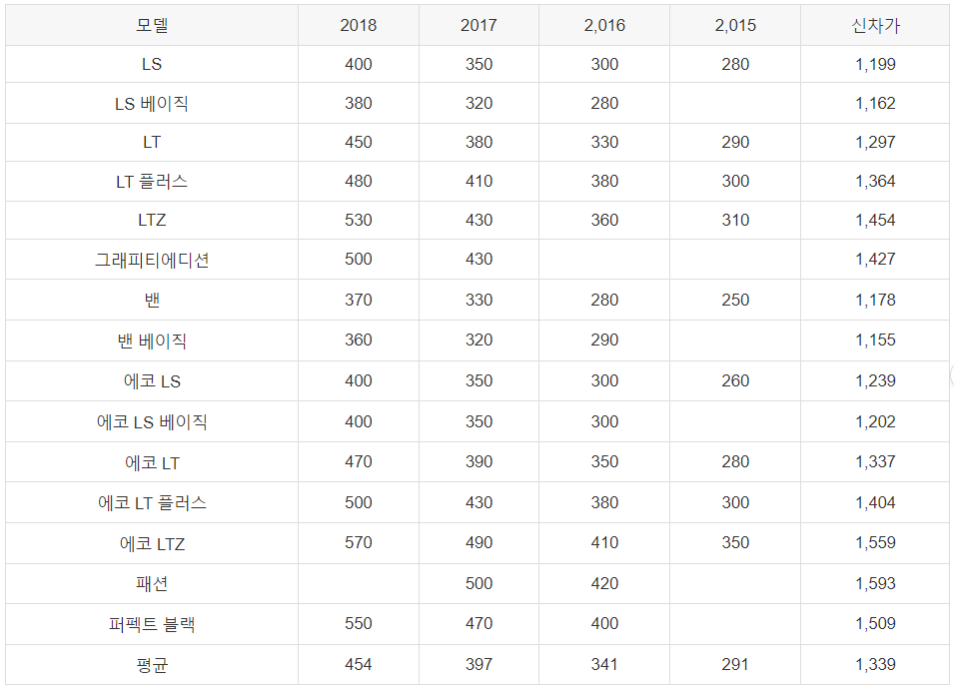 500만원대로 스파크를 구매하기 위해서는 2015년식부터 2018년식 안에서 차량을 구매할 수 있습니다. 더 자세한 스파크 중고차 시세가 궁금하시다면 이 링크에서 확인이 가능합니다.