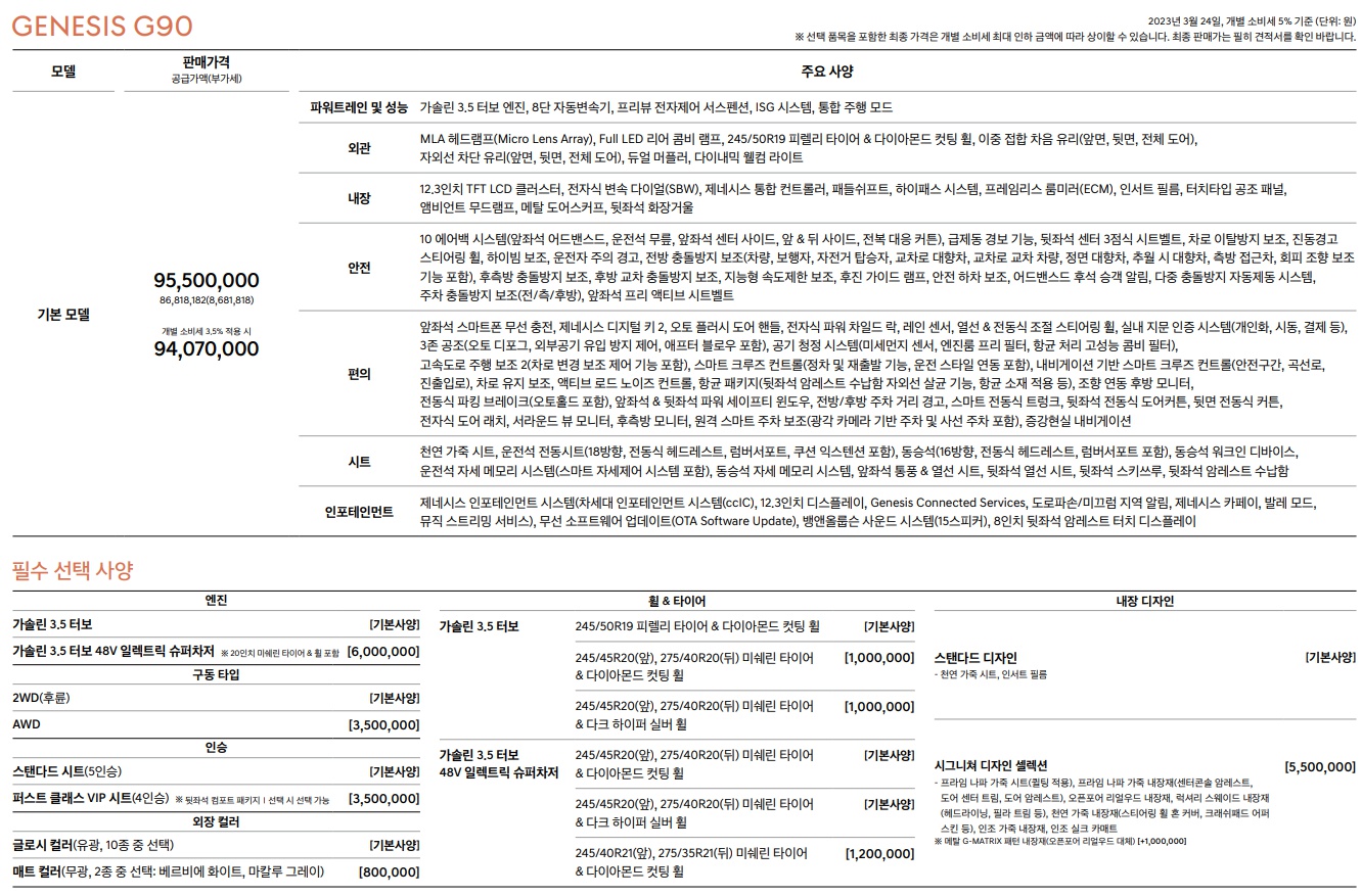 제네시스 g90 가격 정리해보도록 하겠습니다. 제네시스 g90은 제네시스의 플래그십 모델이자 후륜구동 기반의 대형 세단이다. 한국 대통령의 공식 의전차이기도 하다. 제네시스는 G90 풀체인지의 코드네임을 RS4(4세대 모델)로 공식 규정하고 G90을 에쿠스 계통을 잇는 모델로 규정했다.