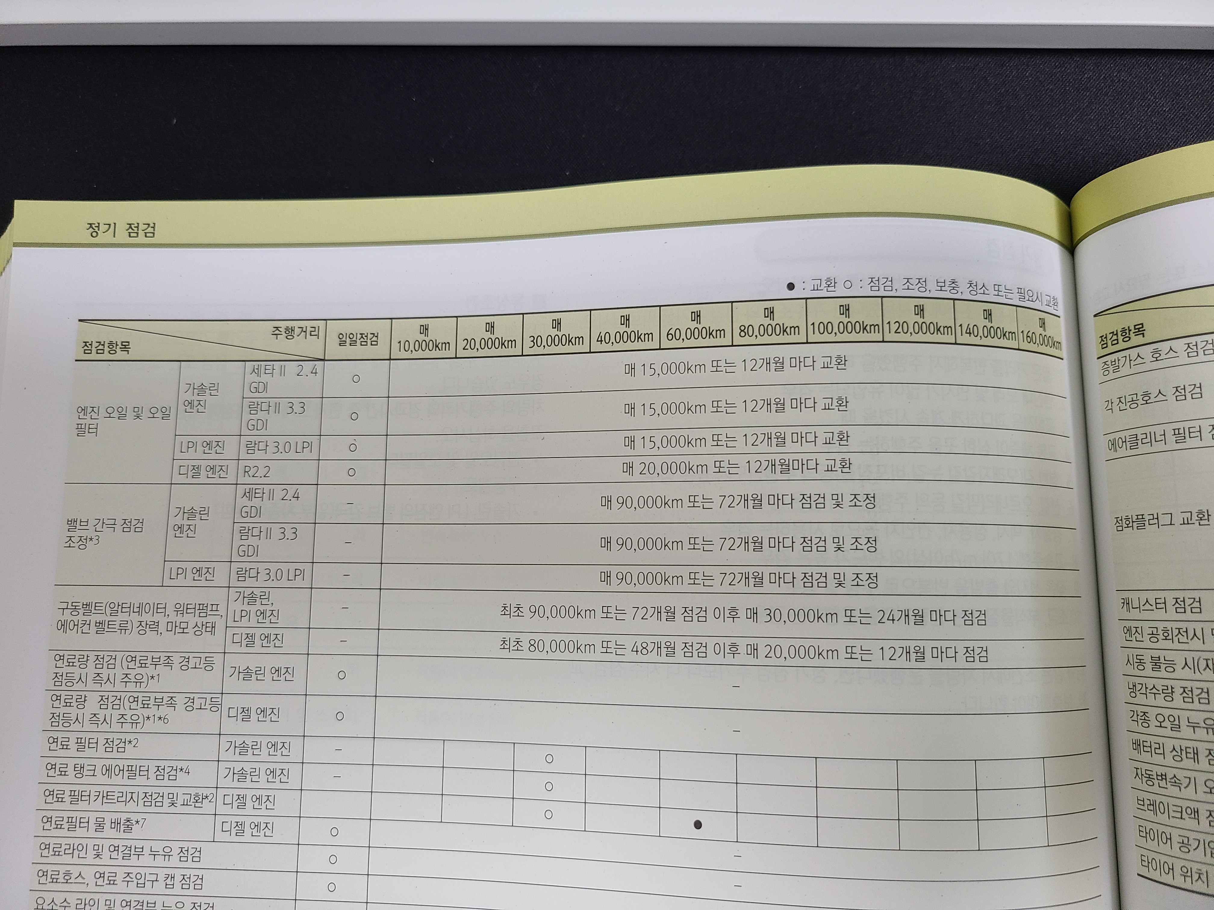 차량 매뉴얼 엔진오일 교체주기