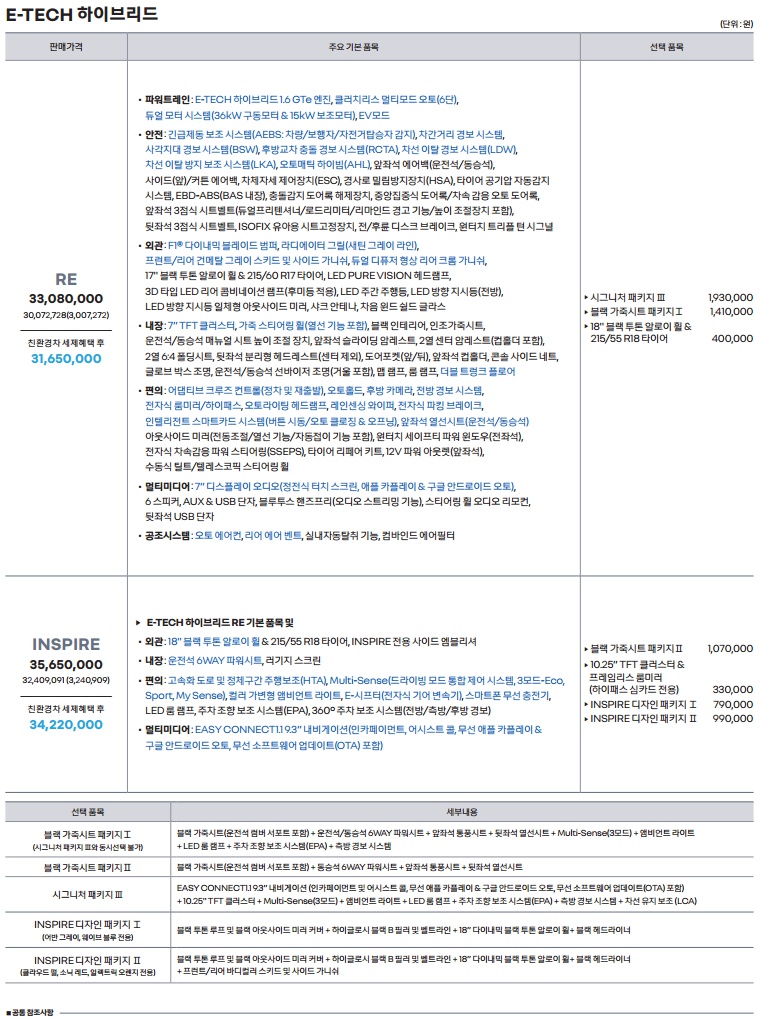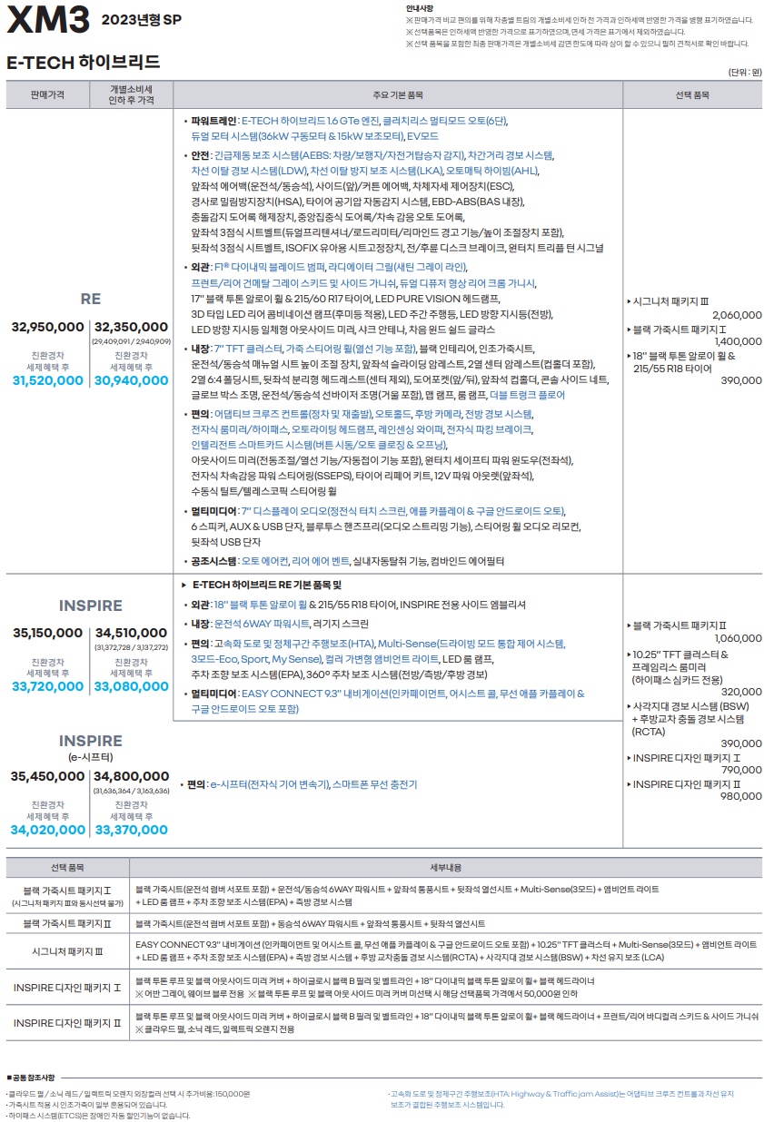 2023 XM3 E-TECH 하이브리드 가격 가격표 정리
